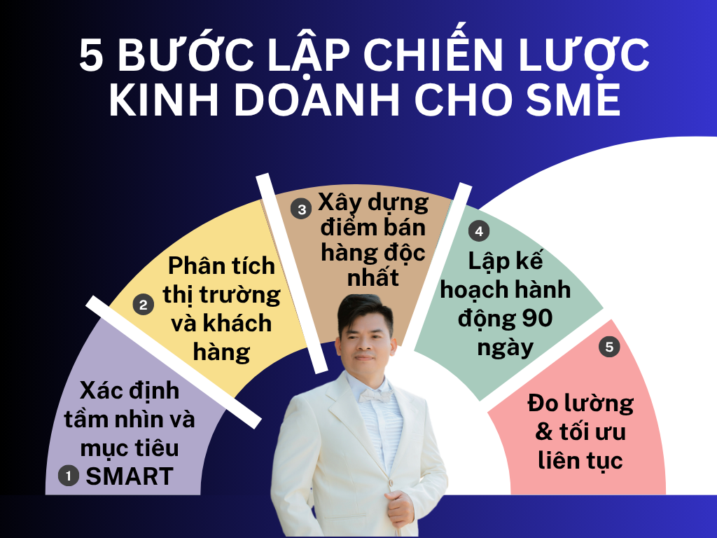 Dưới đây là bộ khung 5 bước thực chiến mà tôi thường áp dụng trực tiếp khi tư vấn xây dựng chiến lược kinh doanh cho các doanh nghiệp nhỏ.